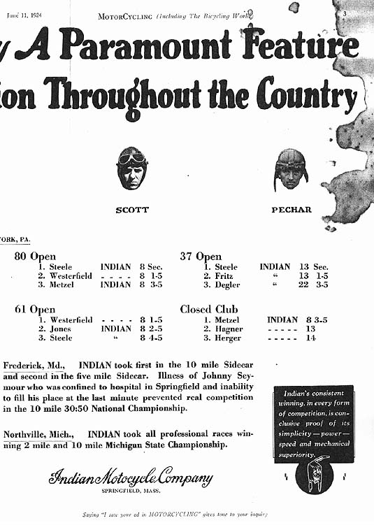 Home | Pictures | Clippings | Quotes | Indian Dealership About Creator | Links | William Brazenor | Hall of Fame